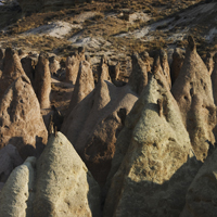 vicinity of Urgup, have a conical shaped body and a boulder on top